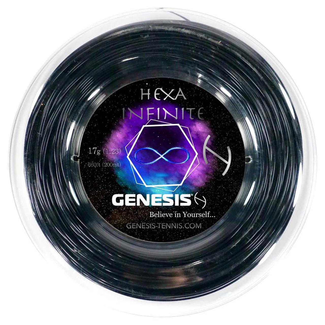 Genesis Hexa Infinite is a monofilament co-polyester string with a hexagonal profile. Offering high levels of tension maintenance, comfort and spin generation, together with good control.