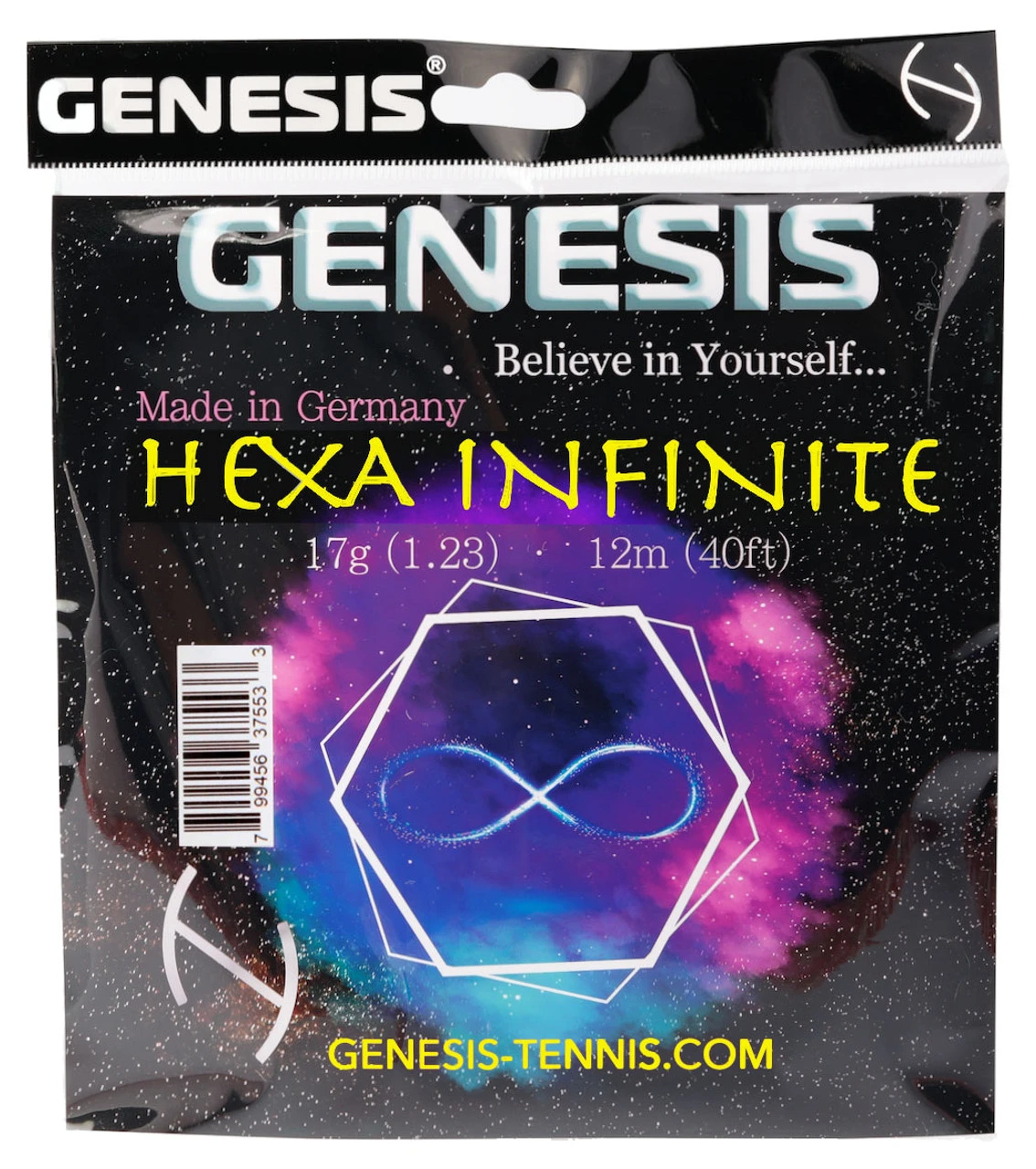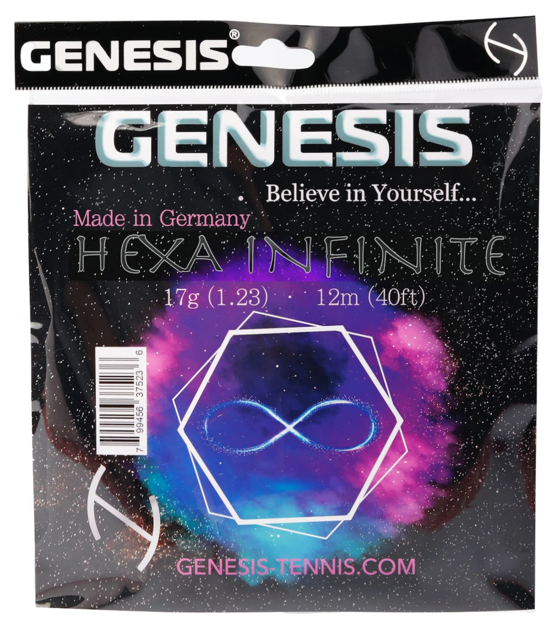 Genesis Hexa Infinite is a monofilament co-polyester string with a hexagonal profile. Offering high levels of tension maintenance, comfort and spin generation, together with good control.