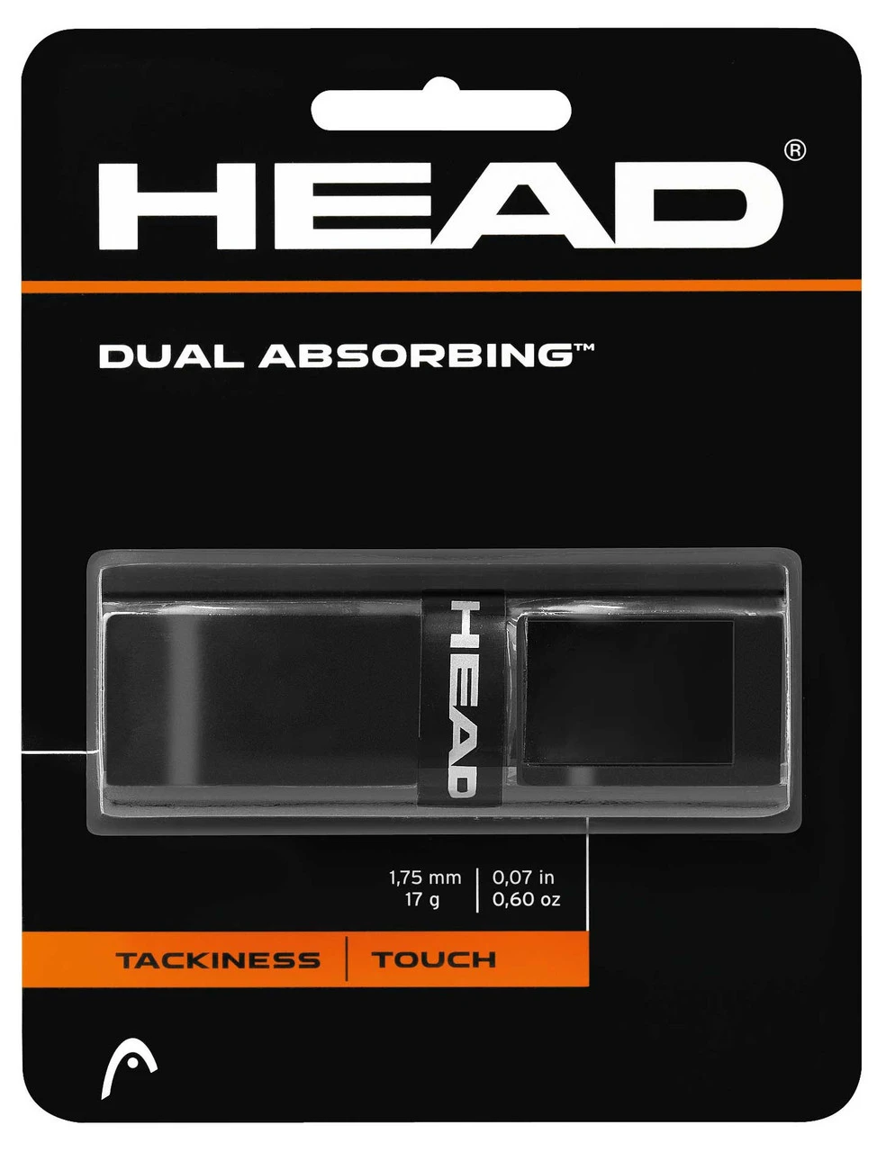 HEAD Dual Absorbing replacement grip has a soft rubber composite with a smooth tacky surface, providing good absorption and keeps the racquet from slipping.