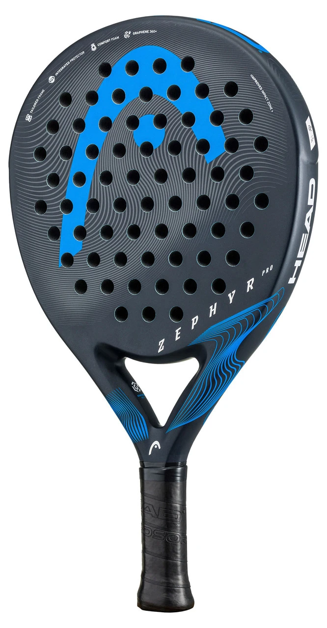 HEAD Zephyr Pro Padel Racquet is suitable for intermediate padel players and offers manoeuvrability and power, easy to play with, combined with a soft and comfortable feel. Zephyr Pro has been enhanced with Graphene 360+ Technology to improve flex and feel. Weight 365g.