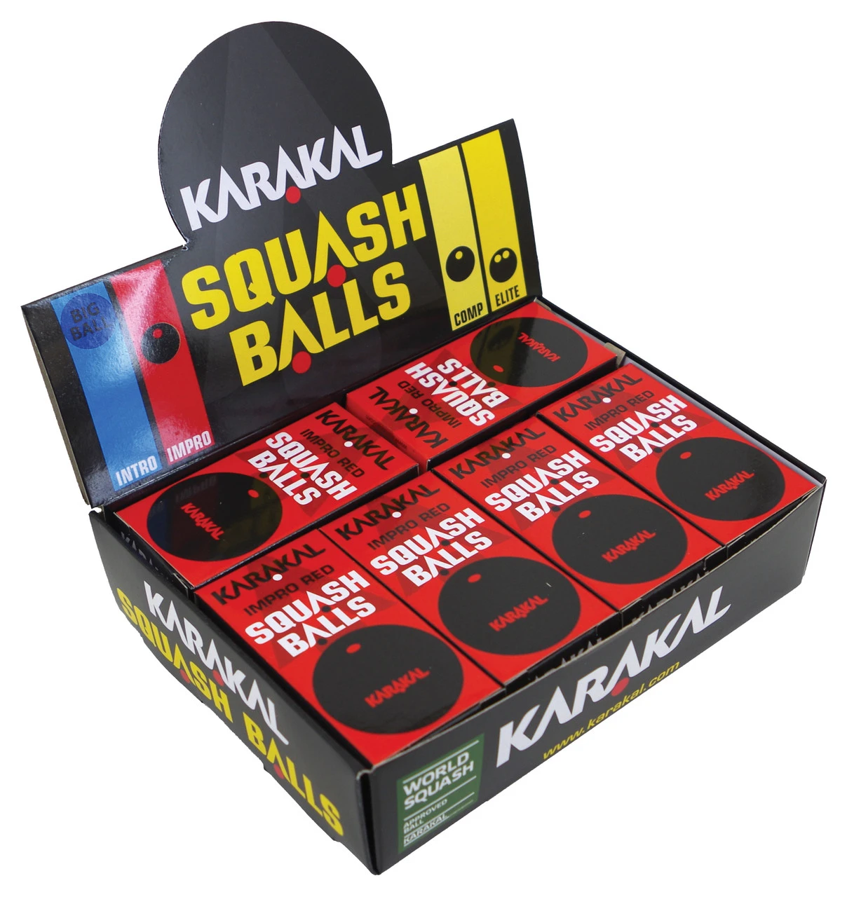 Karakal Squash Balls Red Dot are medium speed for intermediates, coaches and improvers. Non marking rubber. WSF Approved.