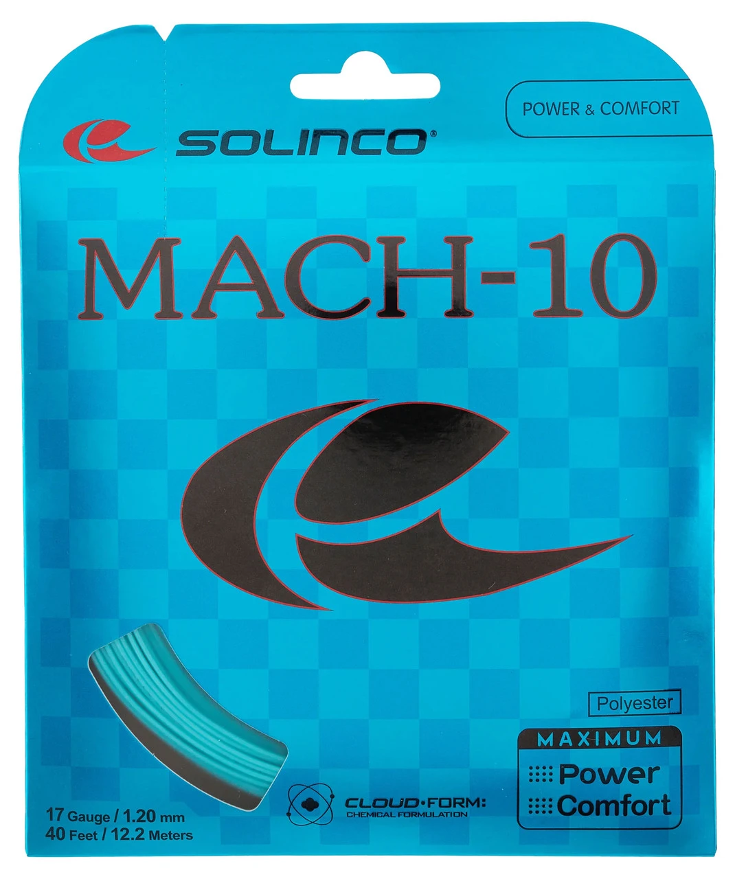 Solinco Mach-10 is Solinco’s most advanced co-polyester, delivering an optimal blend of explosive power, comfort, and playability.