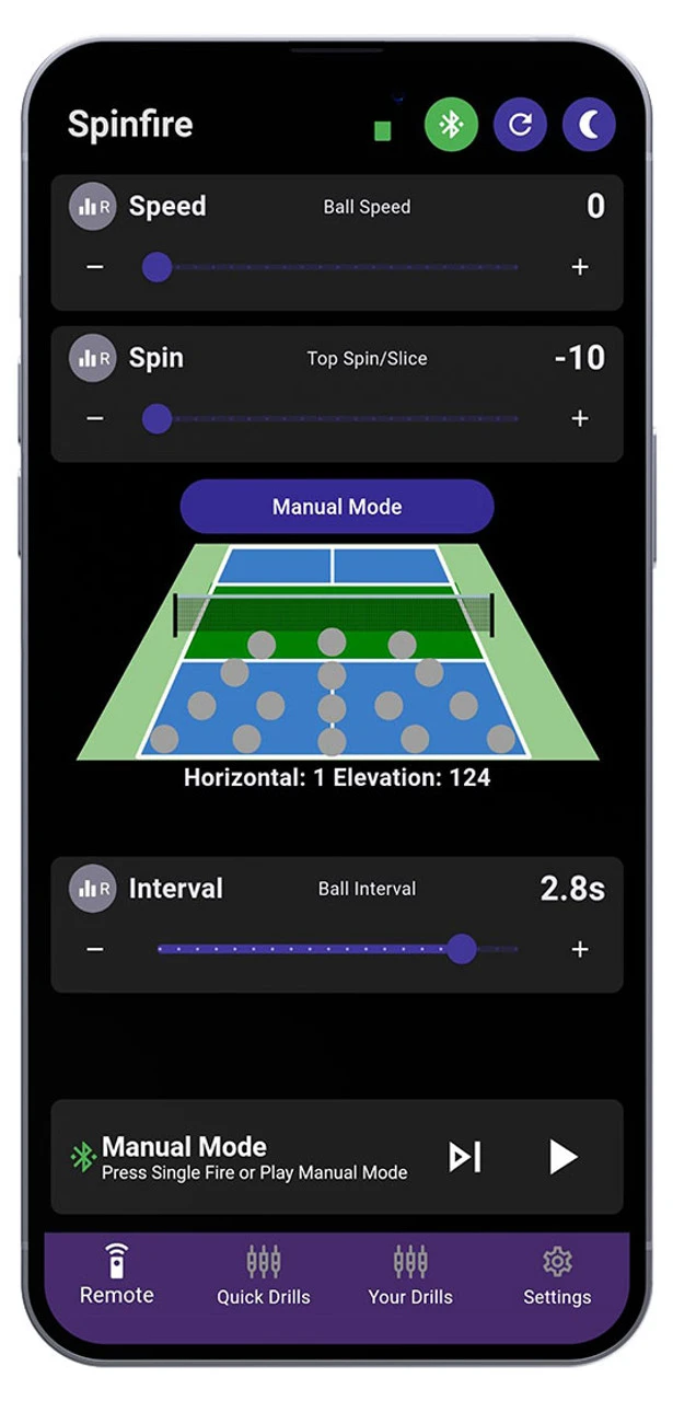 The Spinfire Pickleball Ball Machine offers things you would normally only find on a much more expensive machine. It includes internal movement, an easy-to-use control panel, a multi-function remote control and fully programmable app with AI-Powered Drill Creator and a 150-ball capacity – all wrapped in a very stylish and compact design.