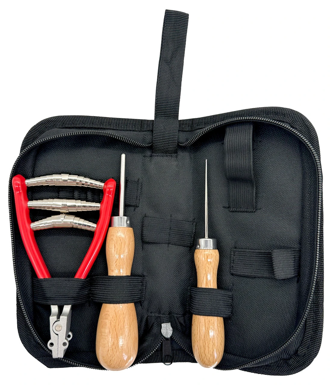 Tennis Stringing Tool Kit includes three tools – starting clamp, setting off awl, tennis awl