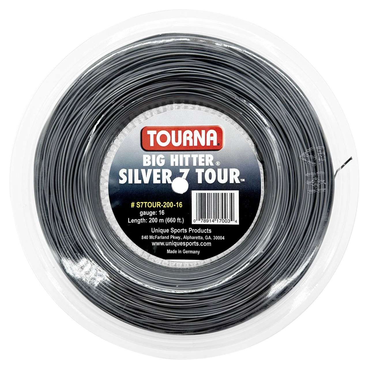Tourna Big Hitter Silver 7 Tour 16 1.30mm 200M Reel strings approximately 18 racquets.