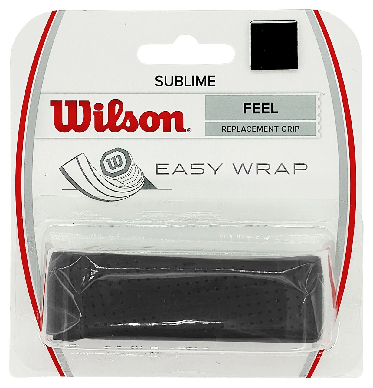 Wilson Sublime offers a great balance between tacky and dry as a replacement grip. Sublime uses micro-perforations which assist with moisture absorption and an embossed edge amplifies traction which will reduce slippage.