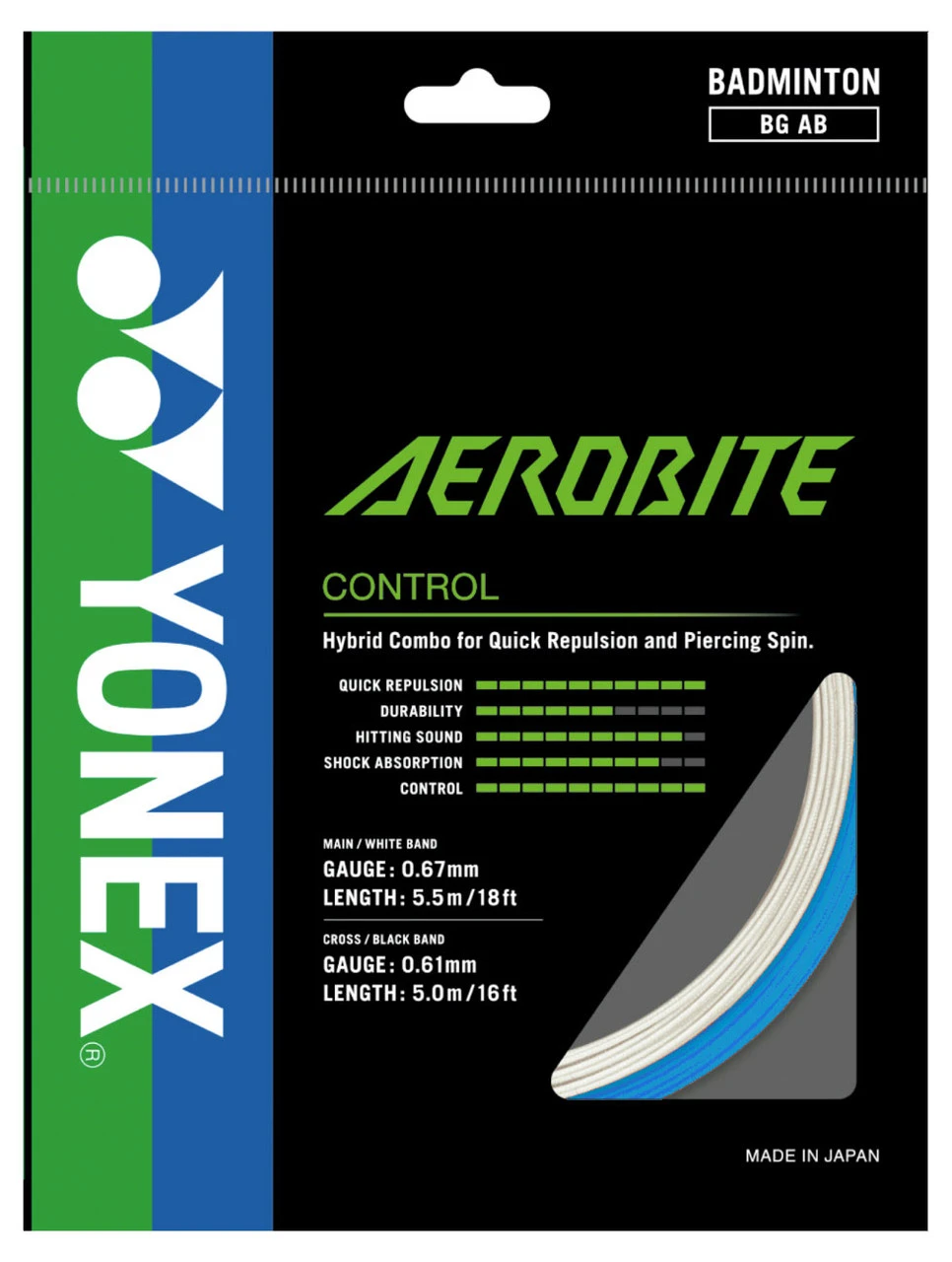 Yonex Aerobite 0.67-0.61mm Badminton Hybrid Set strings one racquet.