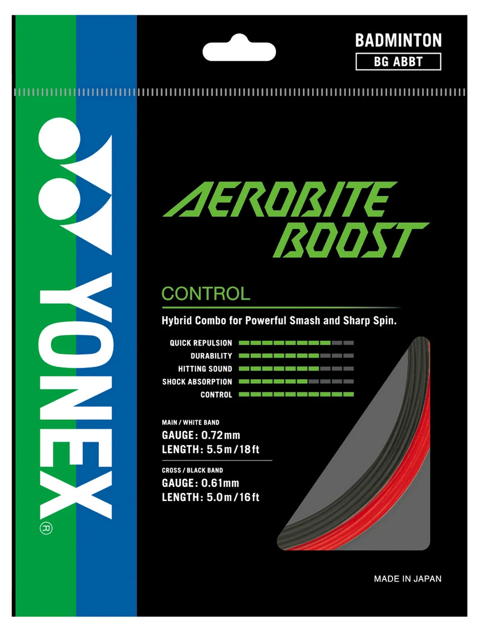 Yonex Aerobite Boost 0.72-0.61mm Badminton Hybrid Set is a multifilament string which offers maximum control. Constructed from a superfibre which is more than twice as powerful as nylon.