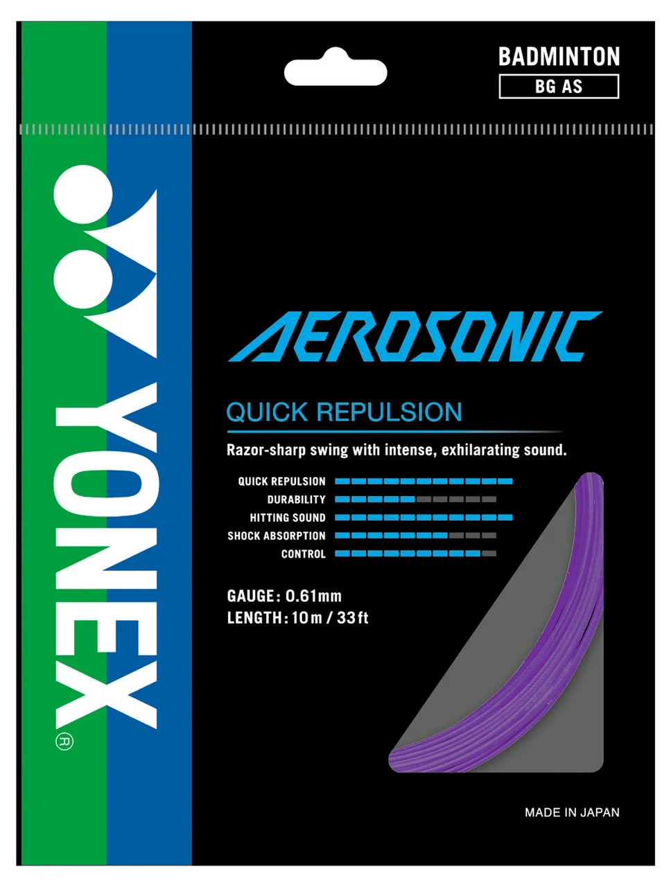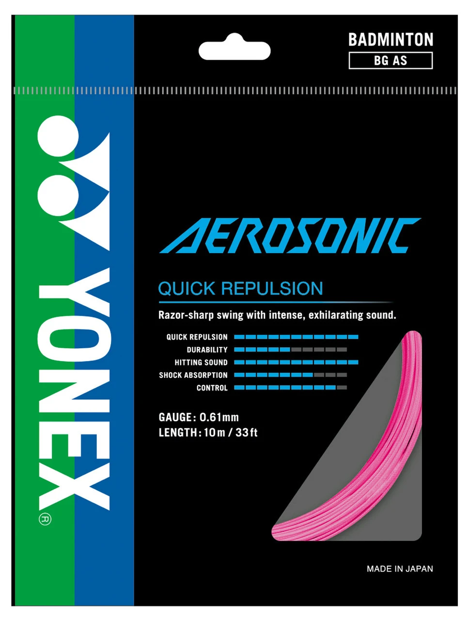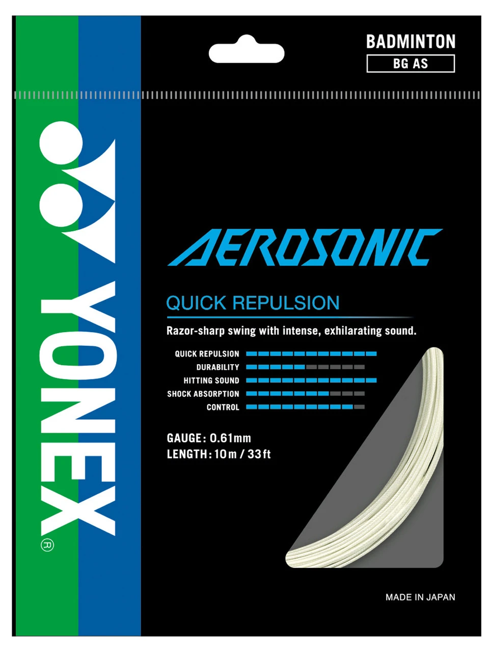 Yonex Aerosonic is the world’s thinnest string and is constructed from a high intensity nylon multifilament, high polymer braided nylon. Suitable for players who are seeking high repulsion and a hard hitting sound.