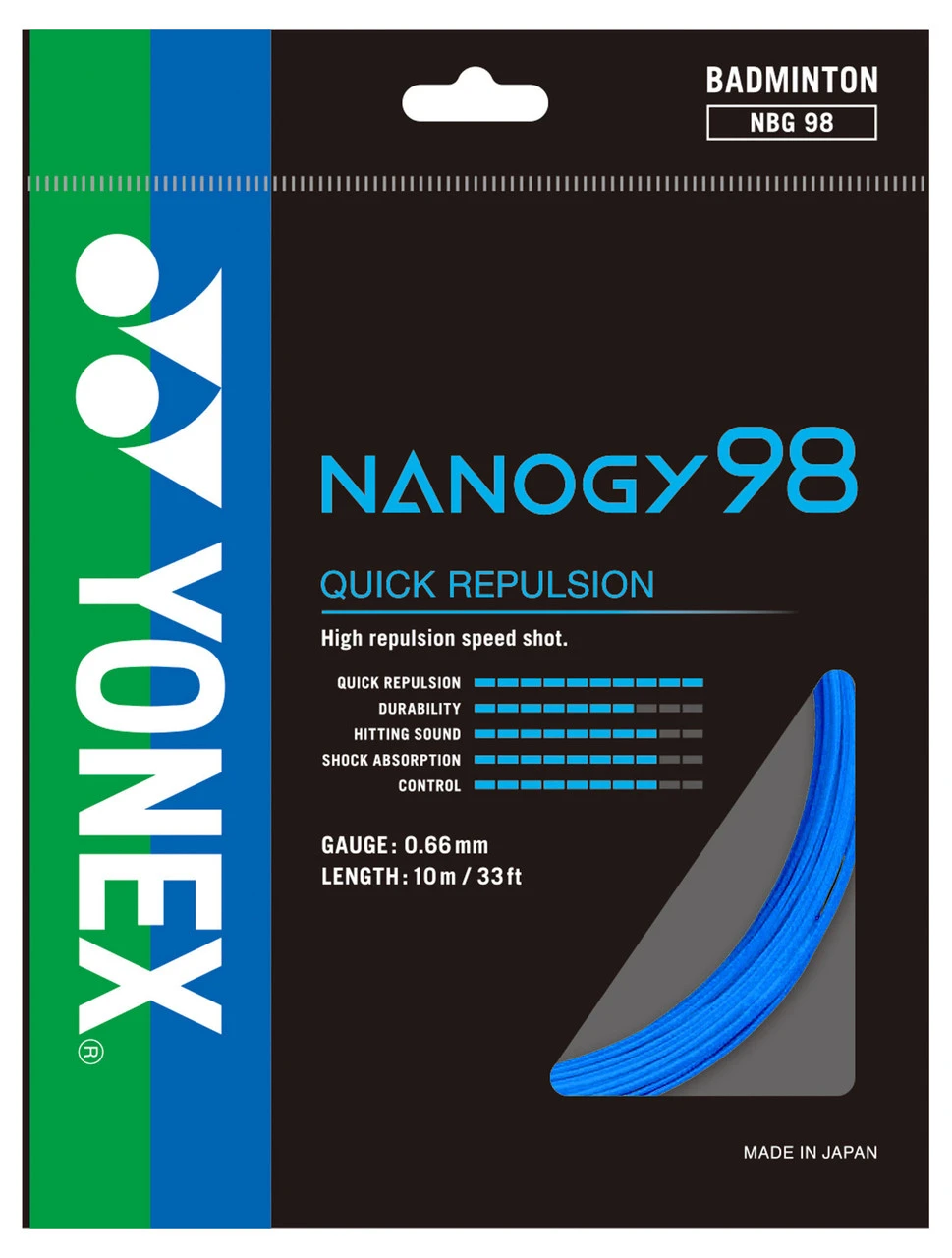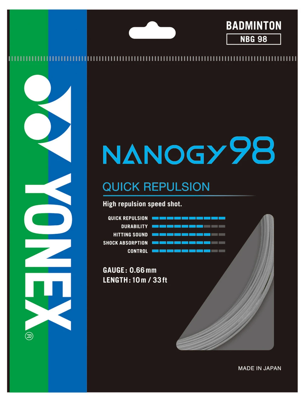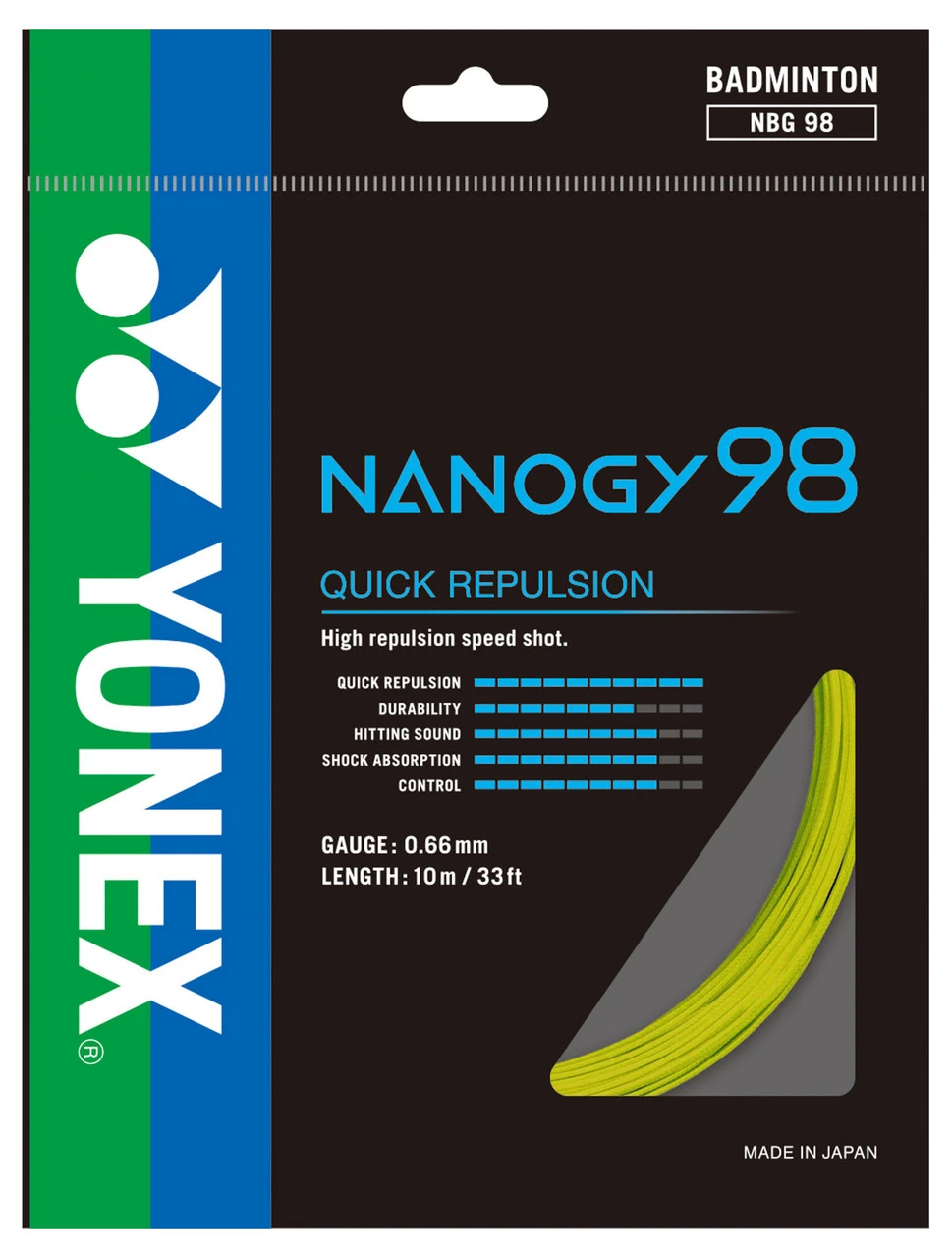Yonex Nanogy 98 has a sharp feeling and great repulsion for high, clear and defensive shots.